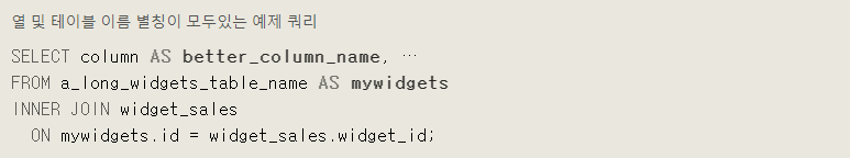 표현식 외에도 일반 열과 테이블도 출력에서 더 쉽게 참조하고 더 복잡한 쿼리를 단순화하기 위해 별칭을 가질 수 있다.