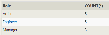 SELECT role,COUNT(*) FROM employees WHERE Role='Artist'